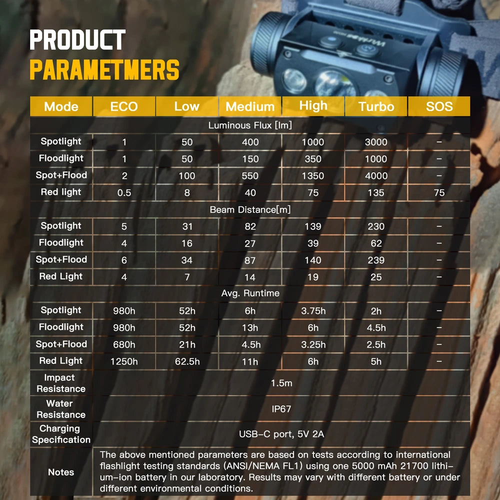 Wurkkos HD50 is a professional, bright angle-head flashlight and toollamp, designed for multiple indoor and outdoor activities like camping, hiking, fishing or hunting. With the supplied headband it can also be used as a headlamp. It is powered by a single 21700 lithium-ion rechargeable battery, is rechargeable via USB-C (both type A-C and C-C cables). Smart Low power automatic reminder function; Moreover, HD50 comes with an adjustable lanyard, a magnetic tailcap and a sophisticated user interface for flexible and convenient one hand operation.