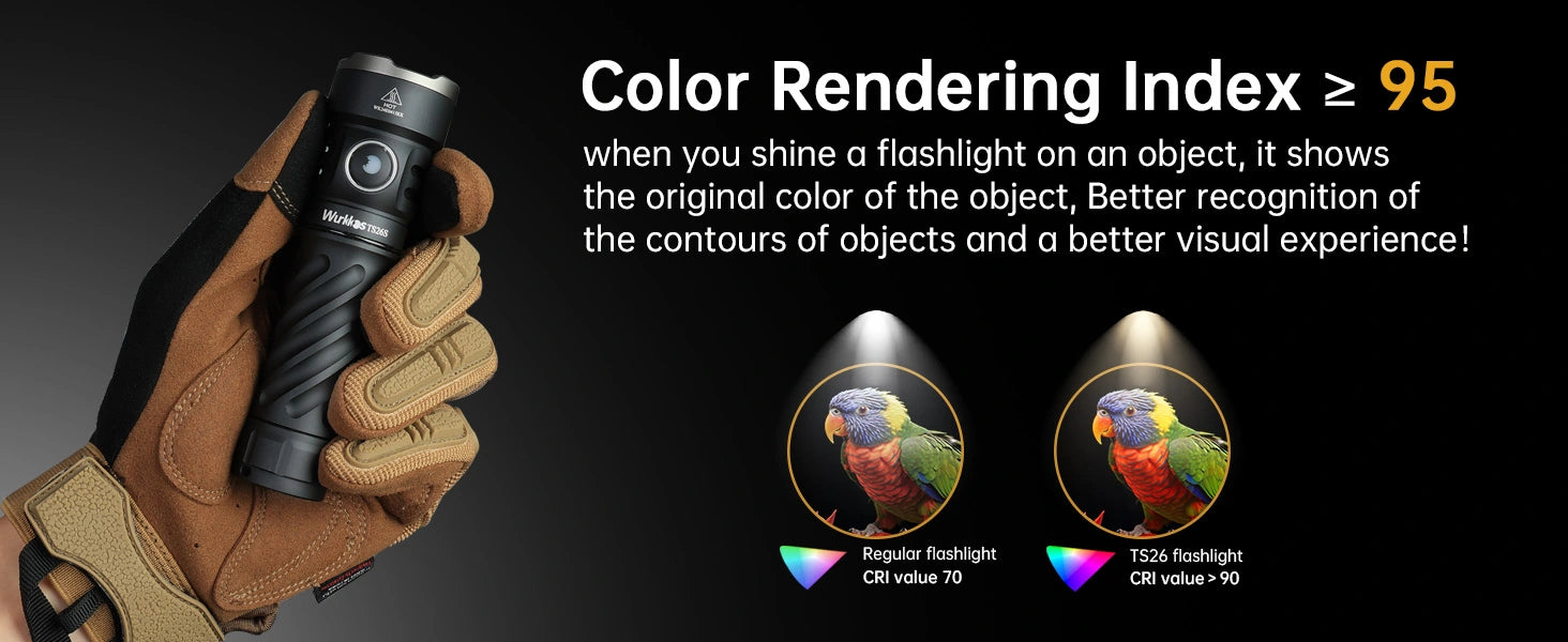 Flashlight body: Aerospace grade 6061 grade aluminum alloy, CNC manufactured to hard-anodized to military grade specification type III, anti-abrasive finish to get solid built body, anti-crash geometry and better heat exchange.